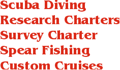 We are available as a private charter for Survey work, recreational fishing, spear fishing and scuba diving.